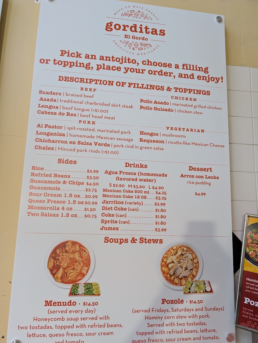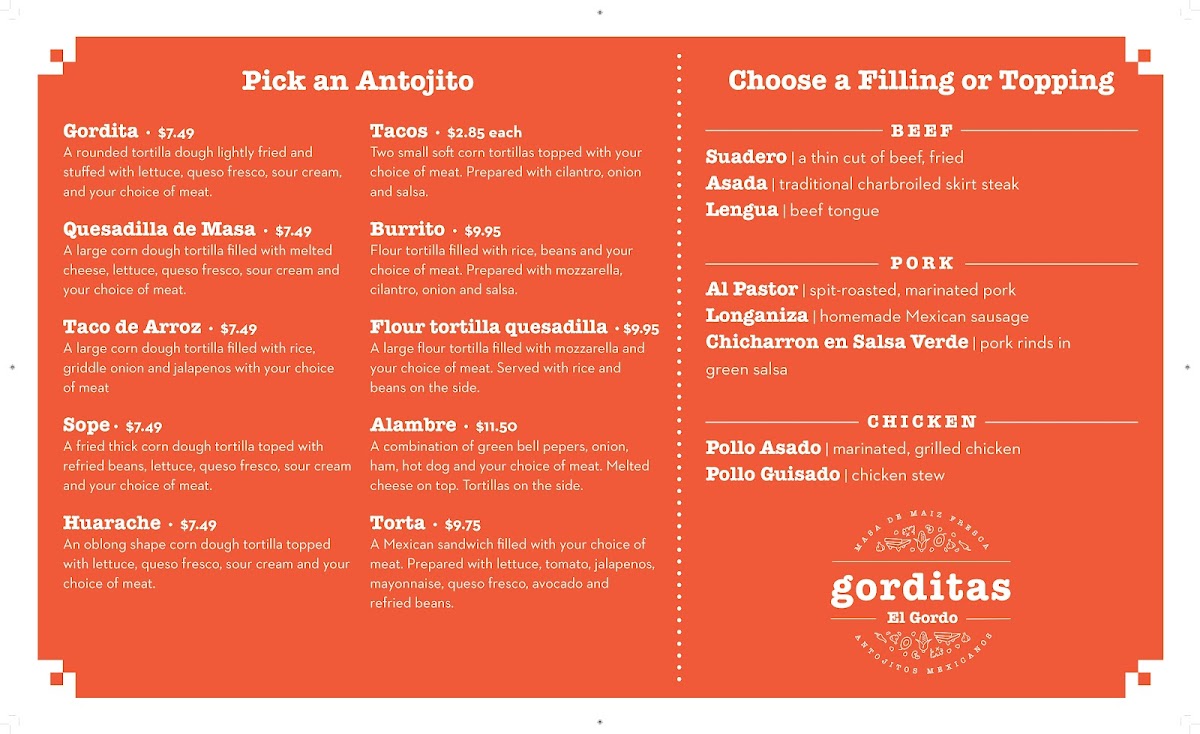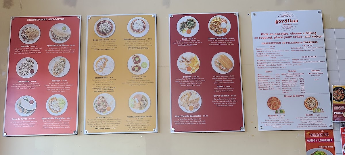 Introducing the Menu at Gorditas El Gordo